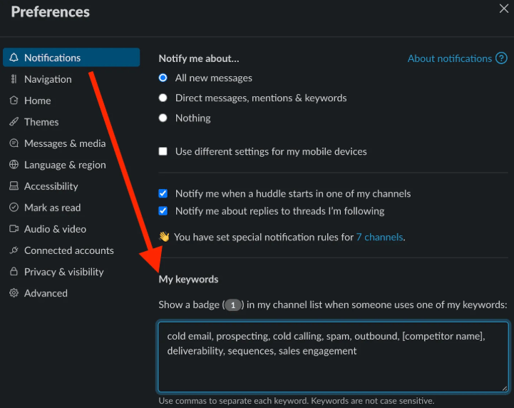 My team used to join Slack communities and set up notification remeinders anytime someone would mention a relevant keyword or competitor (see image below)":